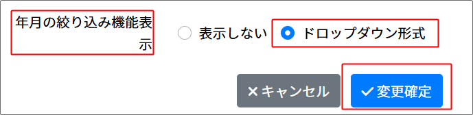 ⇒ 「設定変更」のタブ、「年月の絞り込み機能表示」で設定します。